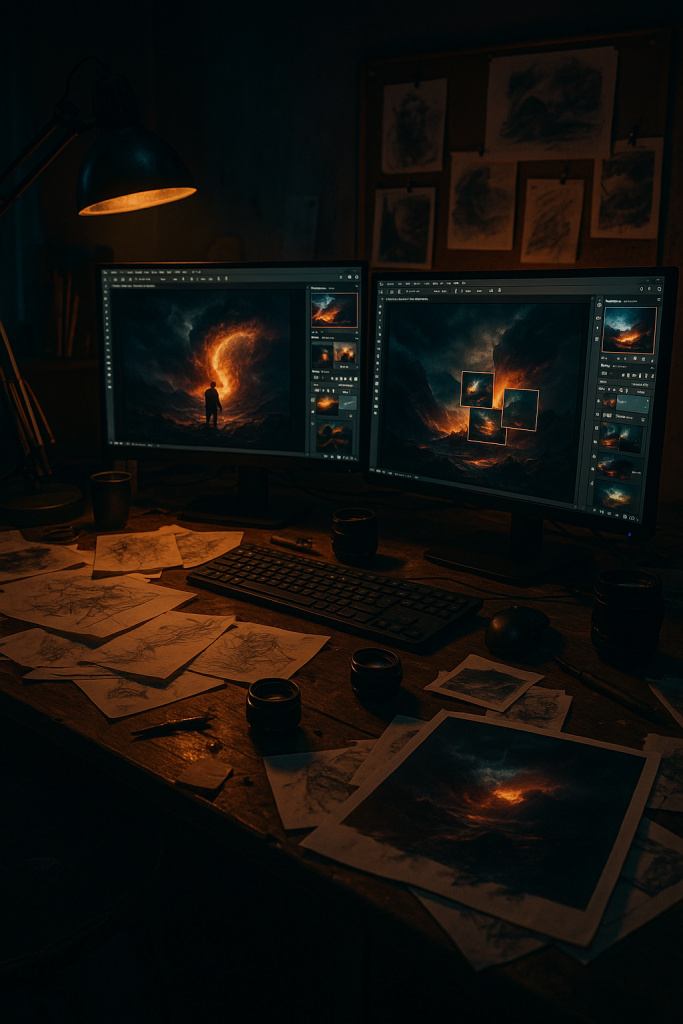 Criação de uma peça de portefólio (cartaz publicitário, manipulação artística, mockup editorial ou capa criativa), demonstrando domínio técnico e criativo.